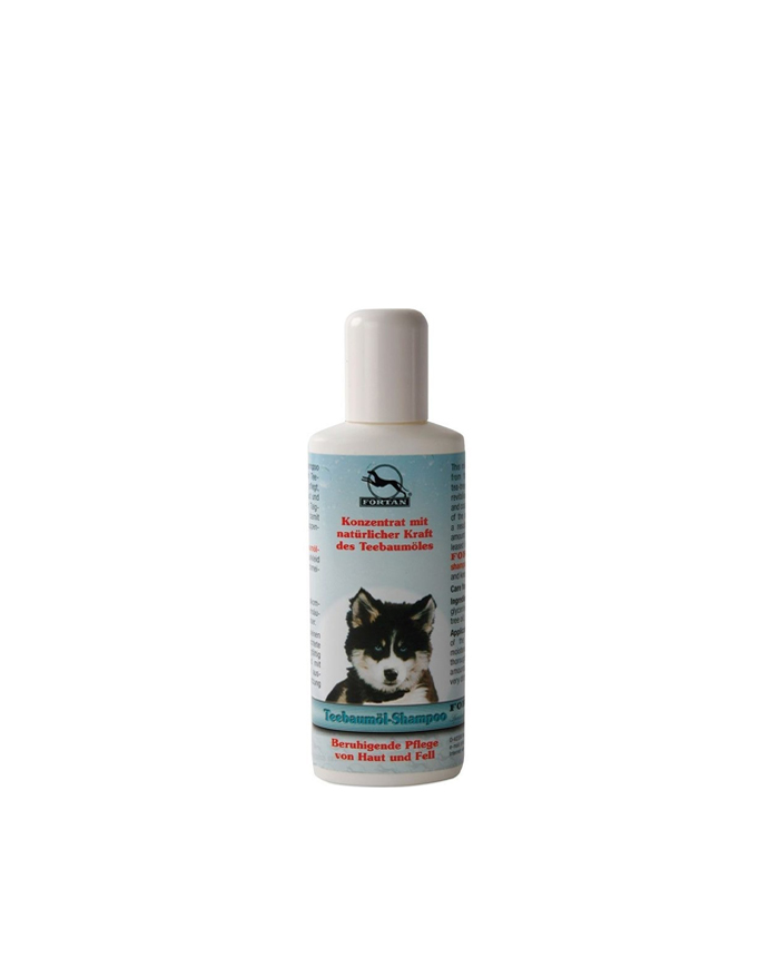 Šampon za pse brenda Fortain. Fortain šampon čisti, omekšava, neguje i vitalizuje kožu i dlaku. Ovaj mekani i blagi šampon zasnovan je na australijskom ulju čajevca. Funkcija lojne žlezde je regulisana i kao posledica toga dolazi do manjeg razdvajanja masti na koži i stvaranja peruti. Šampon za ulje od čaja Fortain daje lep sjaj krznu i ​​omekšava kožu. Na mokro krzno malo šampona i nežno umasirajte u kožu i krzno, temeljno isperite nakon čišćenja.