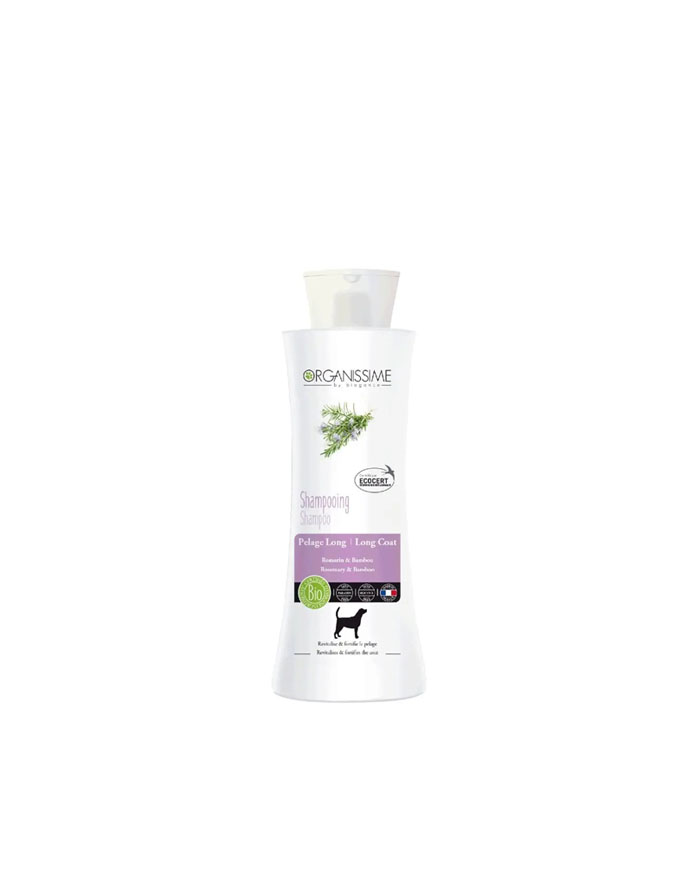 Šampon za pse brenda Biogance. Biogance Organissime Long Coat šampon formulisan je sa eteričnim uljem ruzmarina i ekstraktom bambusa. Zahvaljujući prirodnim aktivnim sastojcima, nežno čisti, revitalizira i jača dlaku psa.