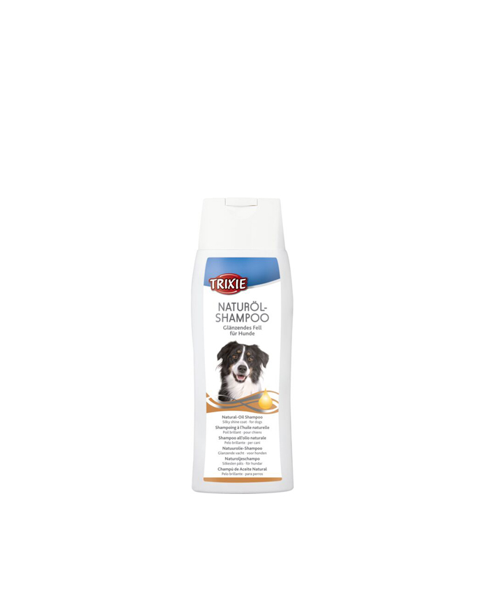 Šampon za pse brenda Trixie. Ovaj prirodni uljni proizvod je alternativa ulju od nerca. Pokazao se ubedljivim u svim testovima i dao je odlične rezultate za češljanje, sjaj, raskošnost i glatkoću. Poseban efekat se postiže visokim sadržajem ulja oraha makadamije i ulja pulpe morske bucke.