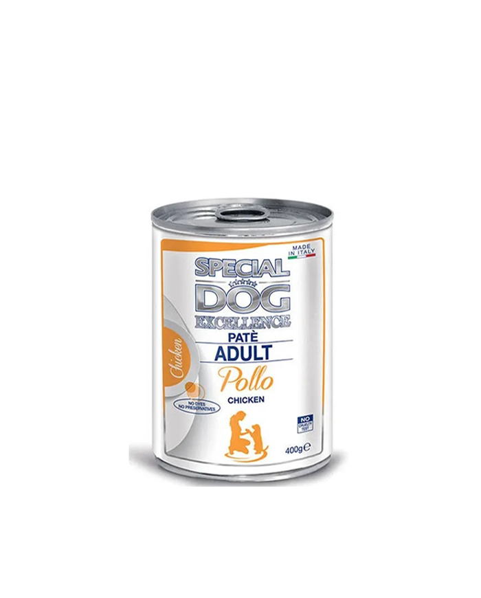 Mokra hrana za pse brenda Monge. Pašteta za odrasle pse sa piletinom „Special Dog Excellence“ sa Piletinom je kompletna hrana za odrasle pse od 1 do 8 godina. Ukusna receptura je proizvedena u Italiji, bez boja, konzervansa ili dodatog šećera, i pogodna je za pse svih rasa. Formula bez žitarica.