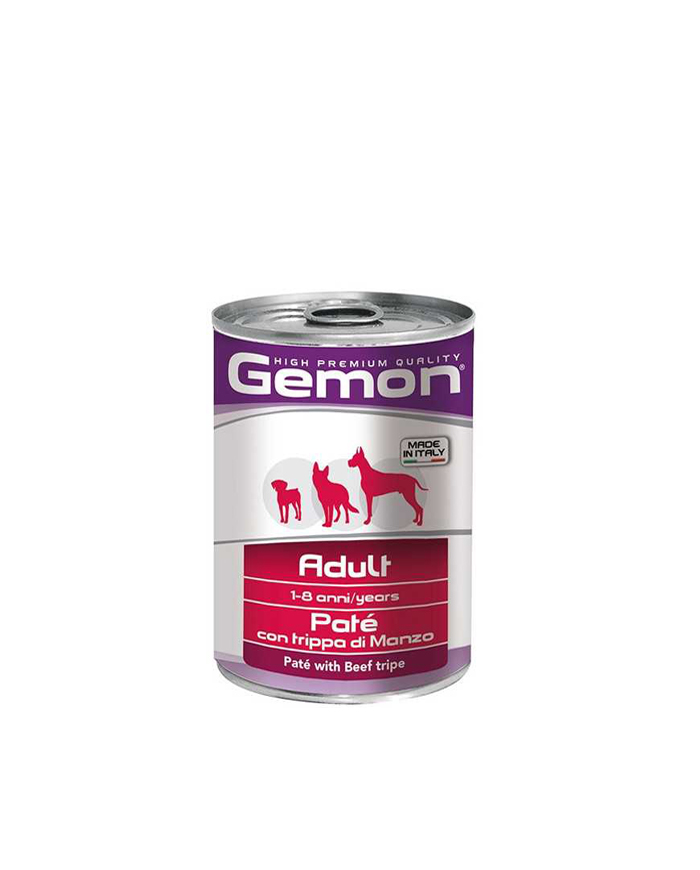 Mokra hrana za pse brenda Monge. Monge konzerva Gemon Dog Adult sa Govedinom. Pašteta sa goveđim škembićima je kompletna hrana za odrasle pse uzrasta između 1 i 8 godina. Ukusan recept napravljen u Italiji, bez glutena, idealan za sve rase.