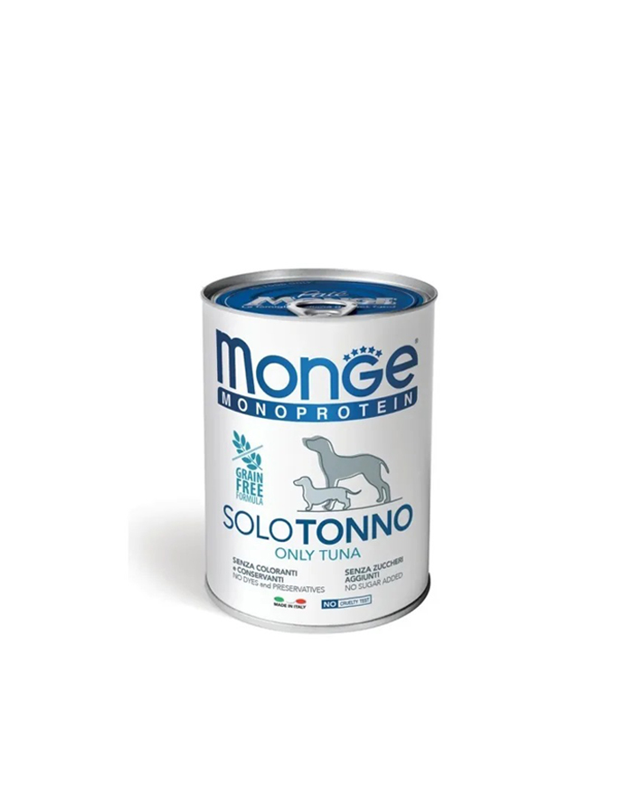 Mokra hrana za pse brenda Monge. Monge pašteta od tunjevine za pse Samo pašteta od Tunjevine formulisana sa jedinstvenim izvorom životinjskih proteina, odabranom tunjevinom najvišeg kvaliteta. Proizvodi 100% italijanski i veoma ukusni. Uravnotežena hrana koja koristi kompleks vitamina A-E-D3 i esencijalne mikronutrijente. Prirodno, bez boja, konzervansa i dodatog šećera. Formulisana sa jedinstvenim izvorom životinjskih proteina, može sadržati tragove drugih izvora proteina. Dnevna količina se može podeliti u dva obroka. Prilagodite količinu veličini, aktivnosti i načinu života životinje. Služi se na sobnoj temperaturi. Uvek treba da bude dostupna sveža, čista voda. Kada ovaj proizvod zamenjuje drugu vrstu, preporučljivo je da se uvodi postepeno tokom perioda od najmanje 1 nedelje. Čuvati na hladnom i suvom mestu. Nakon otvaranja, čuvati u frižideru i upotrebiti u roku od 2 dana.