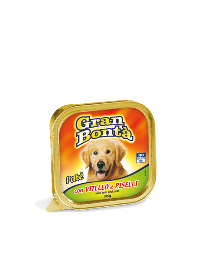 Pašteta za pse brenda Gran Bonta. Gran Bonta teletina i grašak, pašteta za pse 300g. Mokra hrana za pse. Pašteta od mesa i povrća kompletan obrok za vaseg psa. Visok procenat dragocenih proteina i dobra integracija vitamina su rezultat rada naših istraživačkih laboratorija.