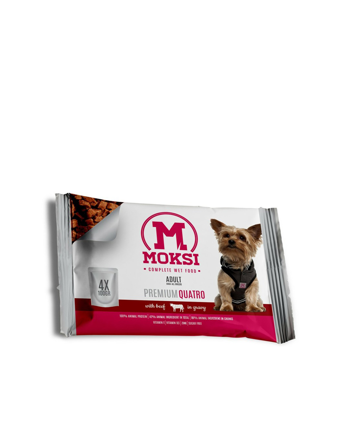 Poslastica za pse brenda Moksi. Moksi preliv za pse sa ukusom Govedine u sosu.