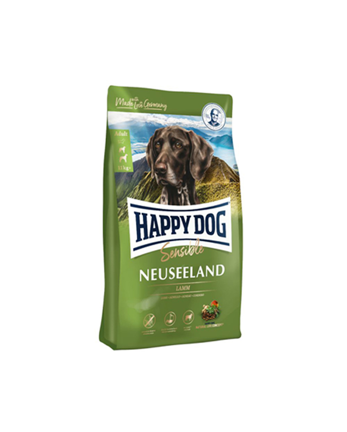 Suva hrana za pse brenda Happy Dog. Happy Dog Supreme New Zealand Adult je kompletna hrana za srednje i velike rase pasa sa 21% jagnjetine i dodatkom mesa zelenih školjki. Najfinija hrana namenjena psima koji imaju alergijske reakcije i intoleranciju na hranu. Jagnjetina doprinosi olakšanom varenju, a novozelandske školjke utiču na održavanje pokretljivosti zglobova kao i regeneraciju hrskavica. Dragocene omega-3 i omega-6 masne kiseline zaokružuju ukus i važne su za zdravu kožu i sjajno krzno.