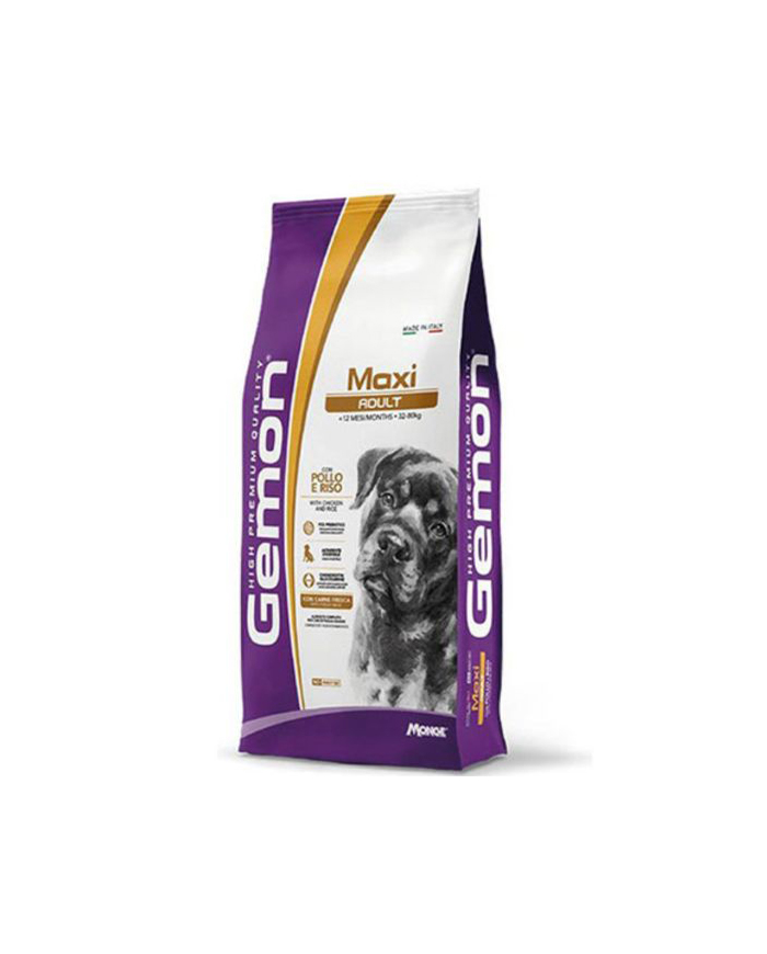 Suva hrana za pse brenda Monge. Gemon Maxi Adult sa Piletinom i Pirinčem je kompletna hrana za odrasle pse velikih veličina. Sadrži laganu, lako varljivu piletinu. Njena formula štiti funkciju jetre i održava zdravim zglobove. Bez dodanih boja i veštačkih konzervansa.