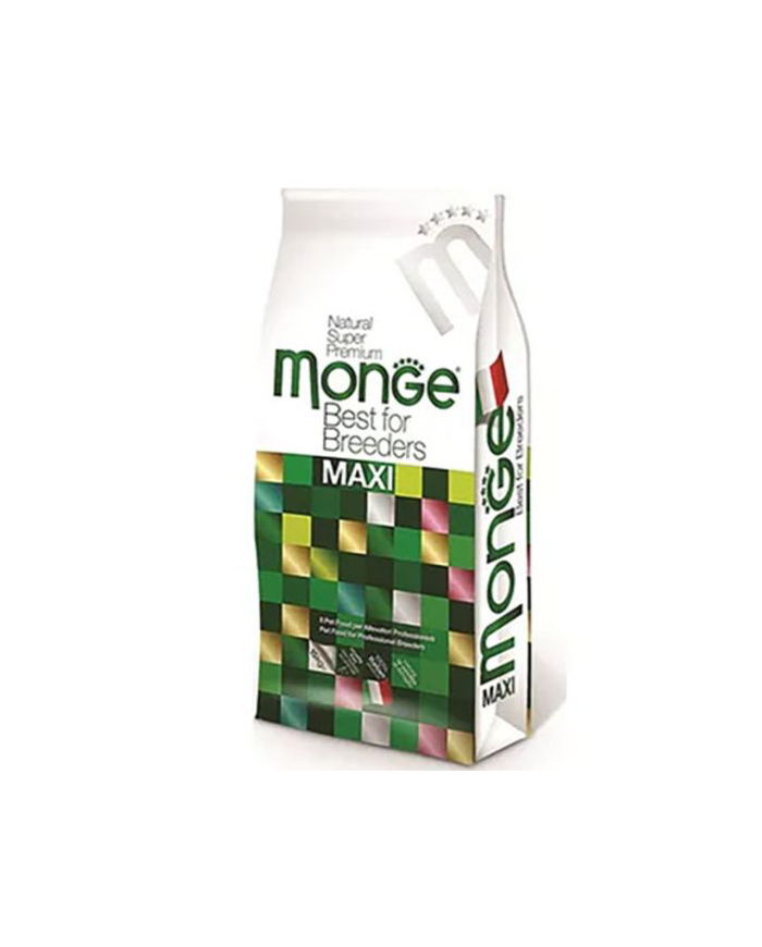 Suva hrana za pse brenda Monge. Granulirana hrana, SuperPremium kvaliteta, namenjena odraslim psima velikih rasa. Hrana u svom sastavu poseduje sirovine čiji su kvalitet i poreklo strogo kontrolisani. Zahvaljujući istraživanjima sprovedenim u Italiji, dobijena je hrana čija formula garantuje zadovoljavanje svih nutritivnih potreba odraslih pasa i obezbeđuje pravilno i zdravo funkcionisanje organizma. Glavni sastojak hrane je pileće meso koje predstavlja izvor kvalitetnog proteina koji se lako i brzo apsorbuje i učestvuje u izgradnji zdravog mišićnog sistema. Hondroitin, glukozamin i kalcijum obezbeđuju zdravlje i pravilnu funkciju koštanog sistema i zglobova, prisustvo prebiotika olakšava varenje, snabdeva crevni trakt dobrim bakterijama i učestvuje u izgradnji jakog imunog sistema dok omega 3 i omega 6 masne kiseline pozitivno deluju na zdravlje kože, sjaj i lepotu krzna. Prisustvo L-karnitina u hrani obezbeđuje održavanje zdrave telesne mase psa. Daily Maxi Adult hrana ne sadrži genetski modifikovane organizme (GMO), soju, veštačke boje i konzervanse, u potpunosti je izbalansirana i predstavlja zdrav i kompletan obrok za psa. Bez dodatih veštačkih boja ili konzervansa.