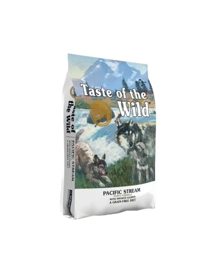 Suva hrana za pse brenda Taste of the wild. Taste Of The Wild Pacific Stream Puppy recept bez jaja dobija sve životinjske proteine iz Ribe, što znači da je bogat omega masnim kiselinama koje pomažu u održavanju zdrave kože, a glatkog i sjajnog krzna, i mogu biti dobra opcija za pse sa osetljivošću na hranu. Ukus dimljenog lososa iz održivih izvora zadovoljiće unutrašnjeg vuka svakog psa, dok pažljivo odabrani sastojci obezbeđuju idealan nivo hranljivih materija za opšte zdravlje i vitalnost odraslih pasa. Hrana pogodna za štence. Bez žitarica, sa proteinima ribe, slatkim krompirom i graškom. Obogaćena povrćem i voćem iz kojih štenci dobijaju prirodne antioksidanse.