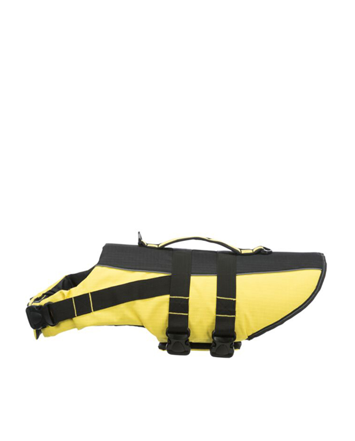 Prsluk za ljubimaca brenda Trixie. Kod odabira odgovarajuce veličine prsluka za spašavanje obratite pažnju na nosivost (težinu psa ) a ne dužina leda. Pošto psi koriste rep za upravljanje u vodi, prsluk ne bi trebalo da pokriva dno repa.