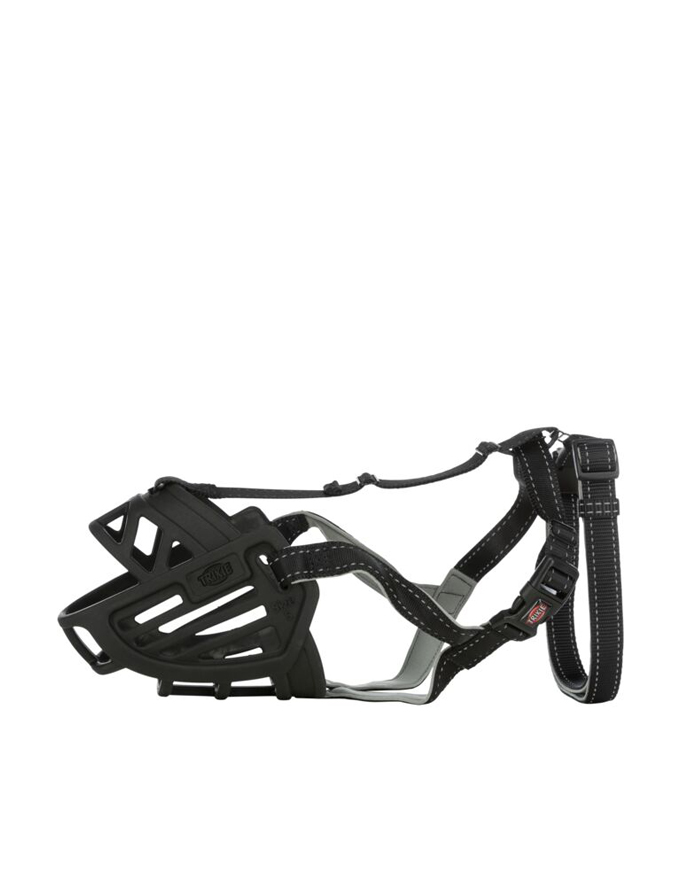Aksesoar za ljubimaca brenda Trixie. Korpa za njušku od gume, najlona i neoprena. Ergonomski oblik, fleksibilan, te omogućava psu da pije vodu. Korpa je podesive veličine.