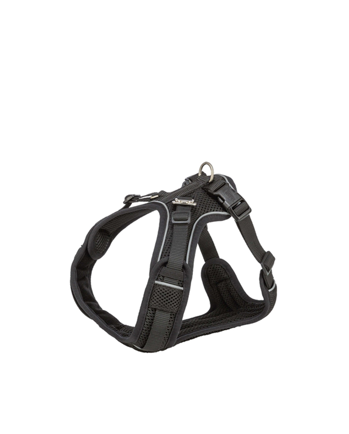 Ogrlica pojas za ljubimaca brenda Trixie. Trixie Premium FlexMesh široki prsni pojas za pse je specijalno dizajniran pojas koji savršeno odgovara niskim, kompaktnim psima poput buldoga. Zahvaljujući aluminijumskoj kopči u predelu vrata, pojas se lako stavlja i skida. Kaiševi za vrat i struk su beskonačno podesivi i imaju dodatnu čičak traku, što obezbeđuje precizno i udobno prianjanje. Prozračan mrežasti materijal u kombinaciji sa tkaninama i mekim podlogama garantuje udobno nošenje, čak i tokom dužih šetnji. Reflektujuće trake takođe pružaju dodatnu vidljivost i bezbednost u mraku.