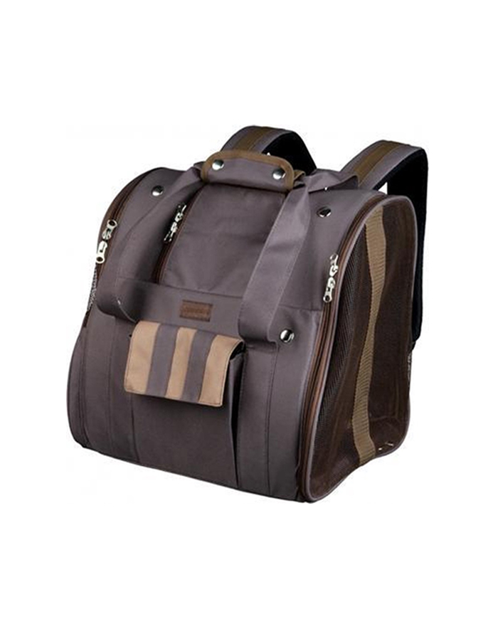 Ranac za ljubimaca brenda Trixie je ranac moderanog dizajna. Veoma praktičan ranac za prevoz manjeg psa. Napravljen od izdržljivog poliestera i sa tvrdim dnom. Artikal ima nekoliko džepova sa patentnim zatvaračem i mrežastom postavom, što omogućava vašem jazavčaru da udobno sedi. Naramenice se lako podešavaju. Zadnji deo ranca ima dve omče za pričvršćivanje kaiša. Idealan za putovanja. Torba je pogodna za pse težine do 5.5 kg.
