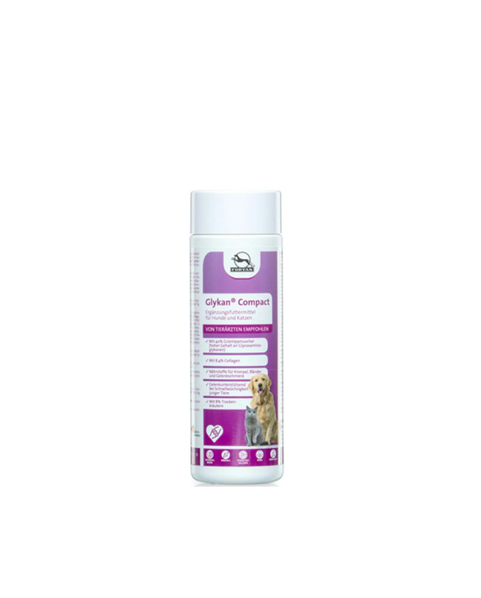 Vitamini za pse brenda Fortain. Glykan Compact nudi način da se dnevni obrok hrane dopuni dodatnim hranljivim materijama bez pribegavanja sintetičkim aditivima. Jedinstvena karakteristika ekstrakta zelenousne dagnje leži u njegovom složenom sastavu. Sadrži glikozaminoglikane (GAG), razne omega-3 masne kiseline (uključujući DHA, EPA i alfa-linolensku kiselinu) i jedinstveni molekul fosforilisanog glikogena. Ove supstance dopunjuju spektar hranljivih materija koji se dobro integriše u uravnoteženu strategiju ishrane. Pored GAG-ova, ekstrakt pruža raznovrsne minerale, 18 L-aminokiselina i razne elemente u tragovima. Ova raznolikost hranljivih materija nudi vlasnicima kućnih ljubimaca mogućnost da obogate dnevnu ishranu širokim spektrom gradivnih blokova. Prah zelenousne dagnje može se koristiti i u kombinaciji sa drugim suplementima kao što su glukozamin i hondroitin kako bi se individualno prilagodila dnevna ishrana. Hrskavica i vezivno tkivo spadaju među područja u telu koja nisu direktno snabdevena krvlju. Stoga se oslanjaju na razmenu tečnosti putem difuzije, u kojoj sinovijalna tečnost (mazivo za zglobove) i okolna tkiva interaguju. Glikozaminoglikani mogu igrati ulogu u ovom procesu vezivanjem vode u relevantnim strukturama. Na ovaj način se podržava prirodna funkcija ovih tkiva. Sa svojim sastavom brojnih gradivnih blokova, uključujući glikozaminoglikane, omega-3 masne kiseline i aminokiseline, ekstrakt zelenousne školjke Fortain Glykan Compact nudi način da se dnevna obrok hrane dopuni dodatnim hranljivim materijama bez pribegavanja sintetičkim aditivima.