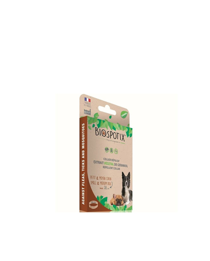 Zdravstvena zaštita za ljubimaca brenda Biogance. Biogance Biospotix Small Dog Collar je ogrlica protiv buva, krpelja i ostalih spoljašnjih parazita, namenjena za male do srednje rase pasa, čija težina ne prelazi 25 kg.